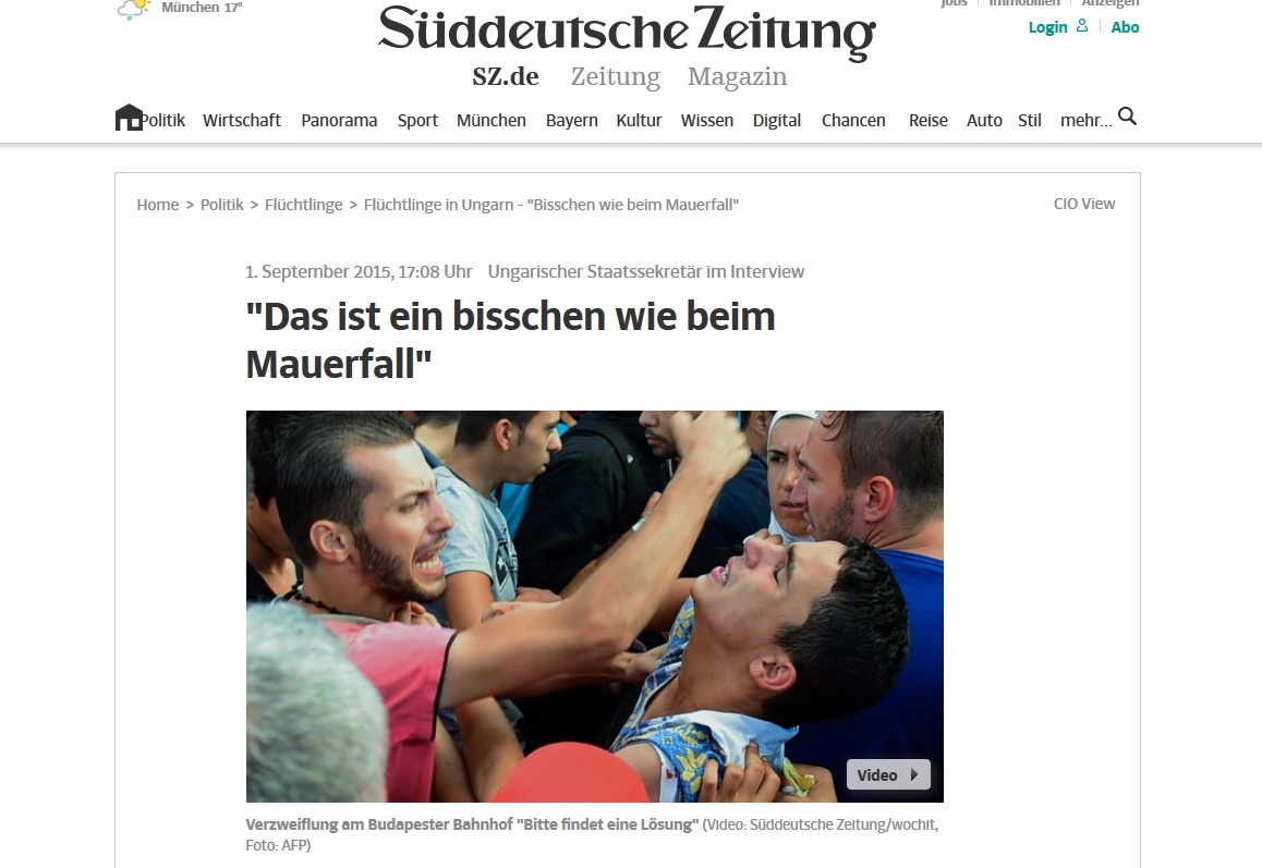 Prőhle Gergellyel, az Emberi Erőforrások Minisztériuma nemzetközi és európai uniós ügyekért felelős helyettes államtitkárával közölt interjút szerdai számában a Süddeutsche Zeitung című liberális német lap. Prőhle Gergely arra a kérdésre, hogy miért huny szemet a rendőrség Budapesten, amikor "menekültek" ezrei ugranak fel a nyugatra tartó vonatokra, elmondta, hogy az eset a berlini fal leomlásakor történt "Schabowski-féle" félreértésre emlékezteti. "Ő sem úgy gondolta, hogy a falat még azon az éjszakán megnyitják" – mondta a helyettes államtitkár.
